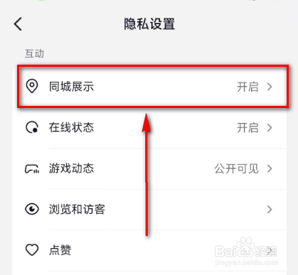 8.进入到隐私设置页面后,点击: 同城展示。