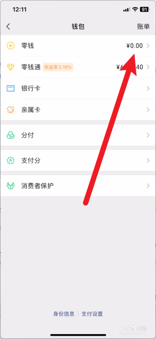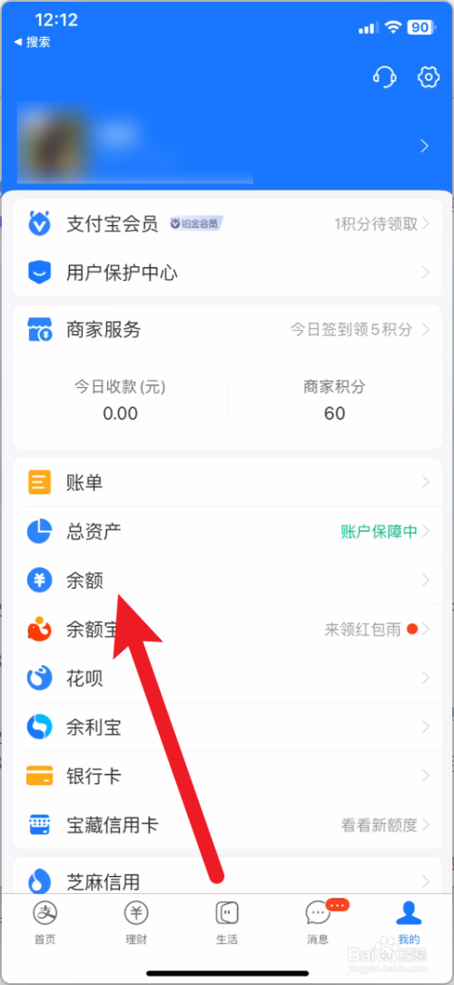 再打开支付我的界面, 点击余额。