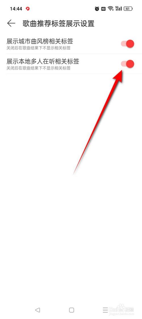 将“展示当地多人在听相干标签”旁的小滑块点亮即可开启。
