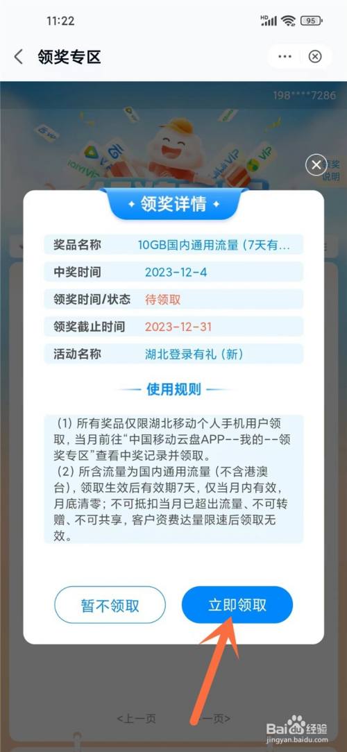 点击【当即领取】按钮。