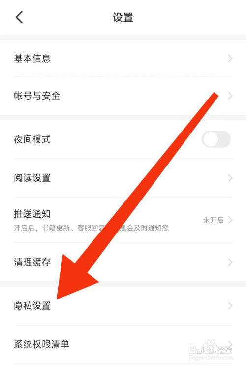 在设置页面,点击【隐私设置】,进入隐私设置页面