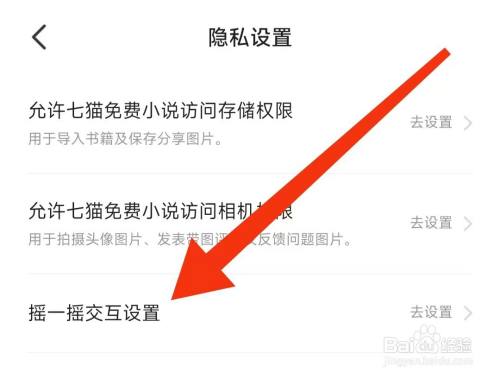 在隐私设置页面,点击【摇一摇交互设置】,进入摇一摇交互设置页面