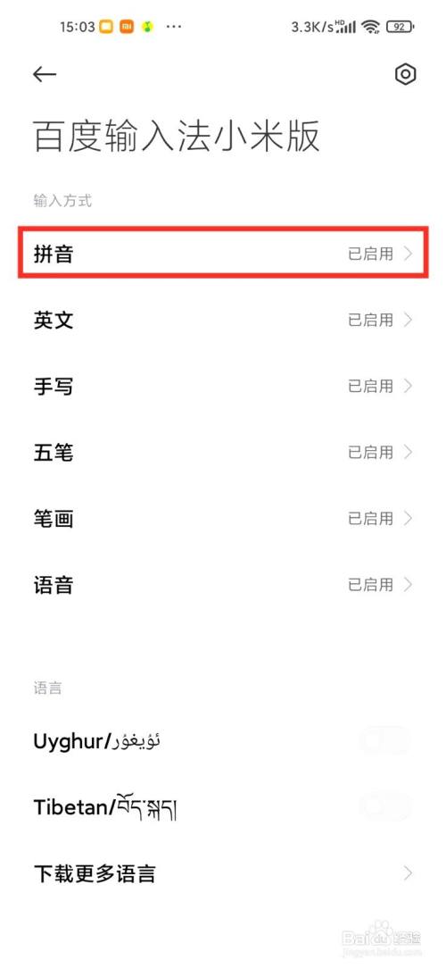 1、打开手机上百度输入法小米版应用,打开更多设置。