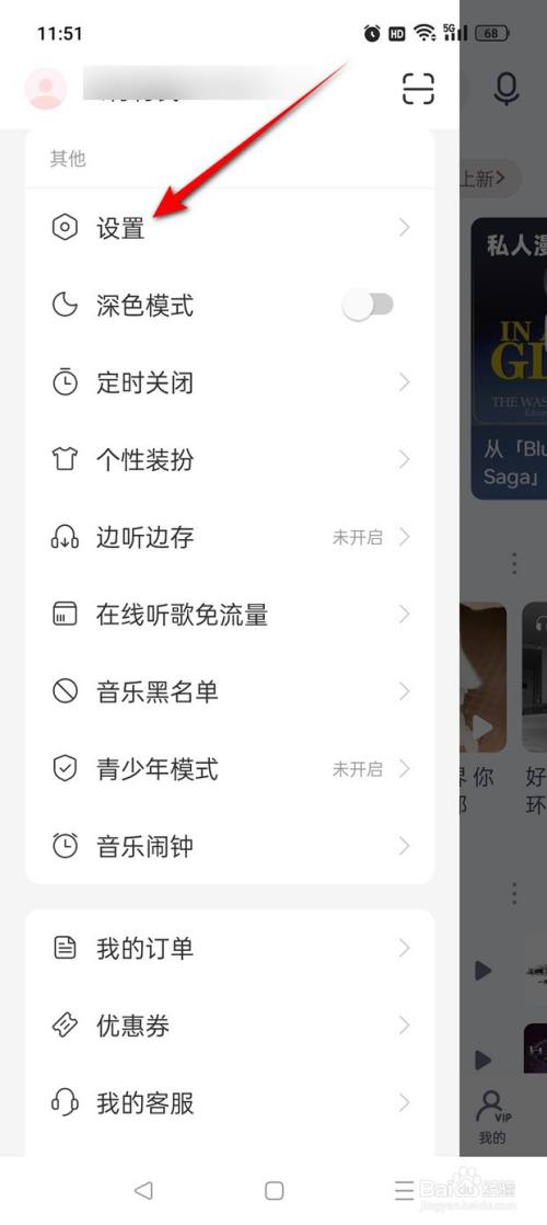 打开网易云音乐“保举”页面,点击左上角的三横图标进入。
