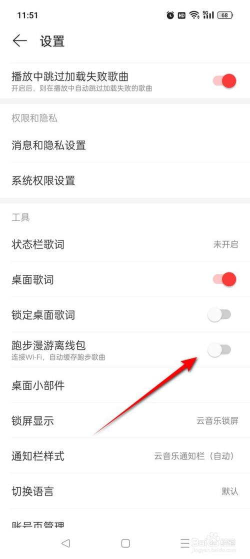 将“跑步周游离线包”旁的小滑块点暗即可封闭,此时点击小滑块。