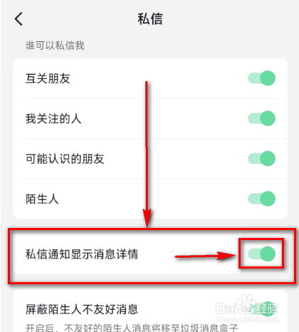 点击开启:(私信通知显示动静详情)即可。