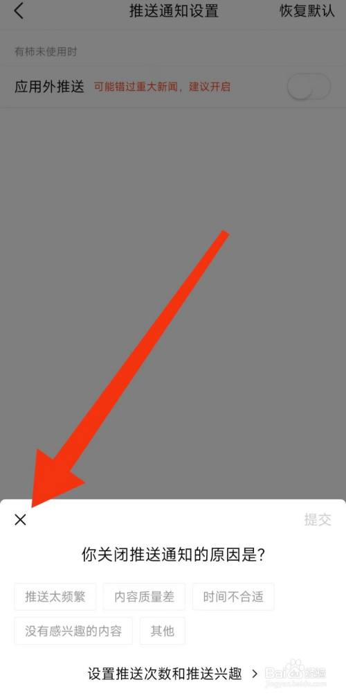 在推送通知设置页面,点击【应用外推送】右侧按钮,封闭该功效