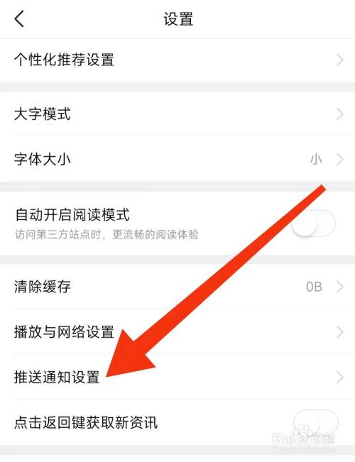 在设置页面,点击【推送通知设置】,进入推送通知设置页面