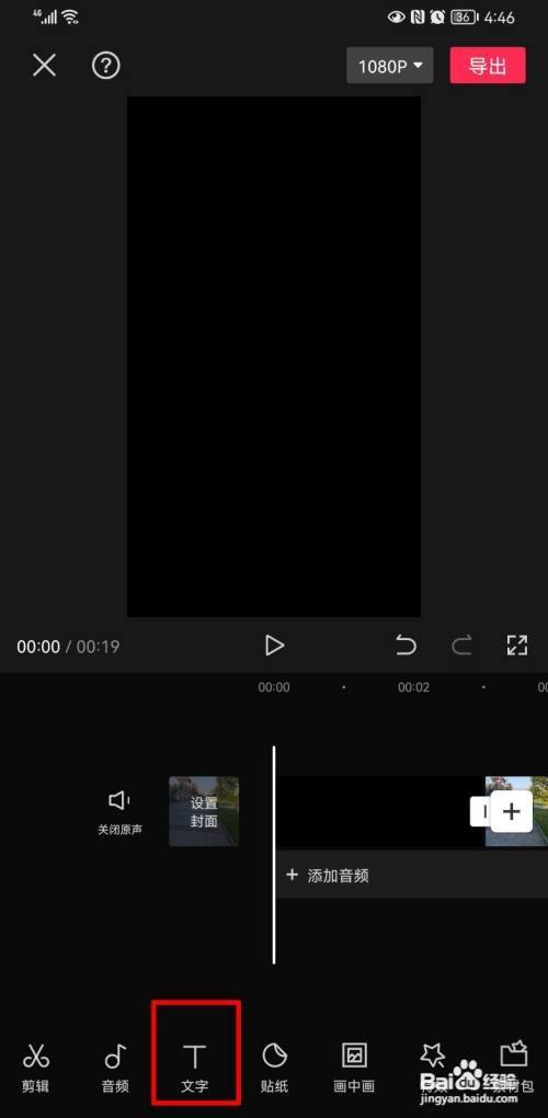 进入剪映,点击第一段视频轨道的加号按钮。