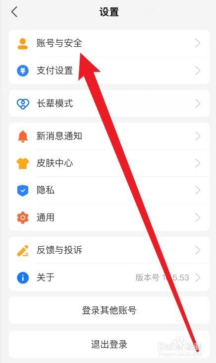 进入设置页面,点击【账号与安全】选项