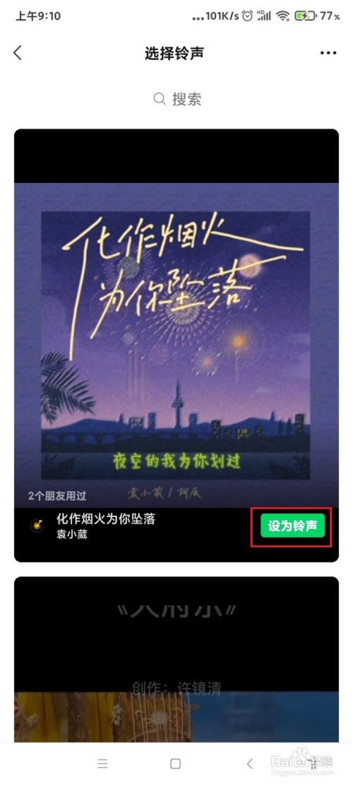 打开设为铃声。