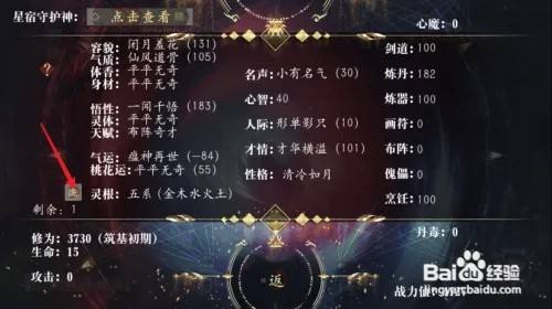 步调四;查看玩家灵根,点击灵根前面的洗图标。