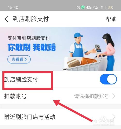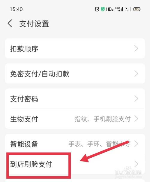 支付设置页面,点击【到店刷脸支付】选项。
