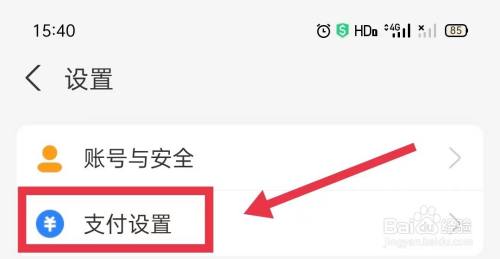 设置页面,点击【支付设置】选项。