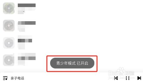 打开如下图界面,提醒青少年模式已开启。
