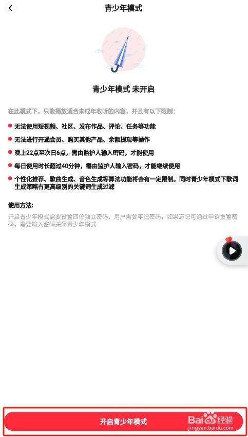 打开如下图界面,点击下方的开启青少年模式按钮。