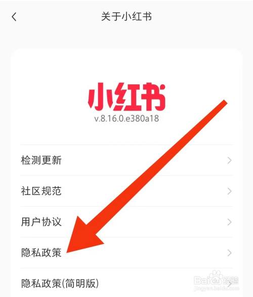 在关于小红册页面,点击【隐私政策】,查看隐私政策内容
