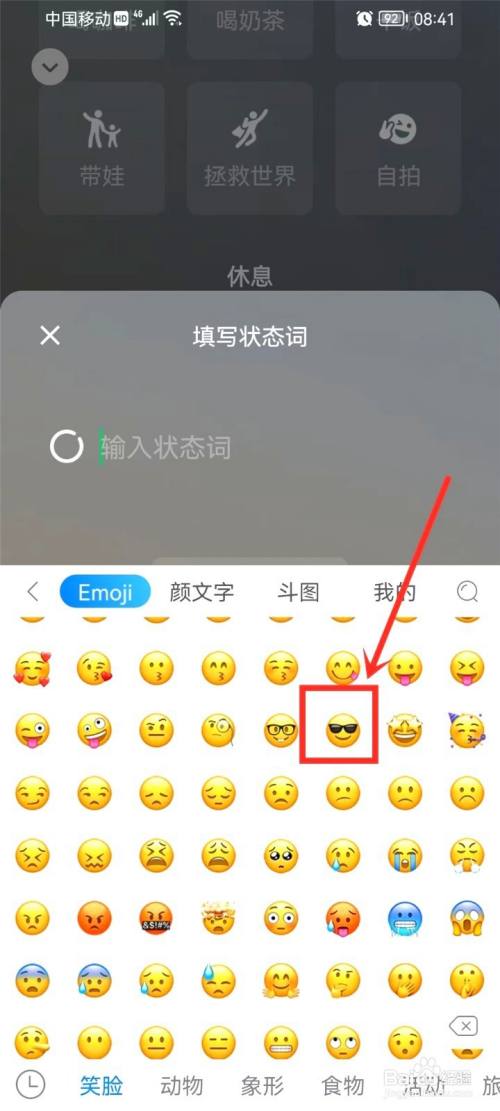 打开手机键盘圆脸心情。