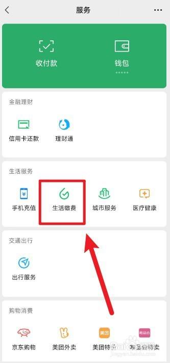 打开微信办事页面,点击【生活缴用度】