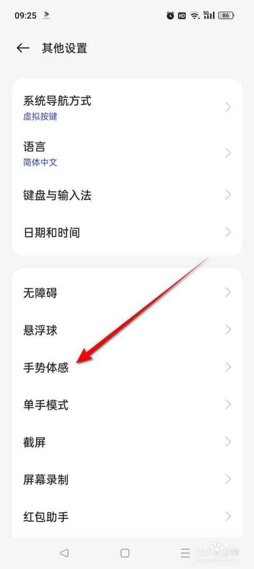 点击“手势体感”。