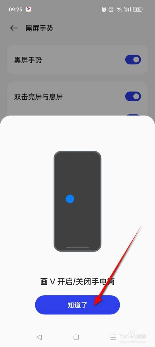 点击“黑屏手势”。