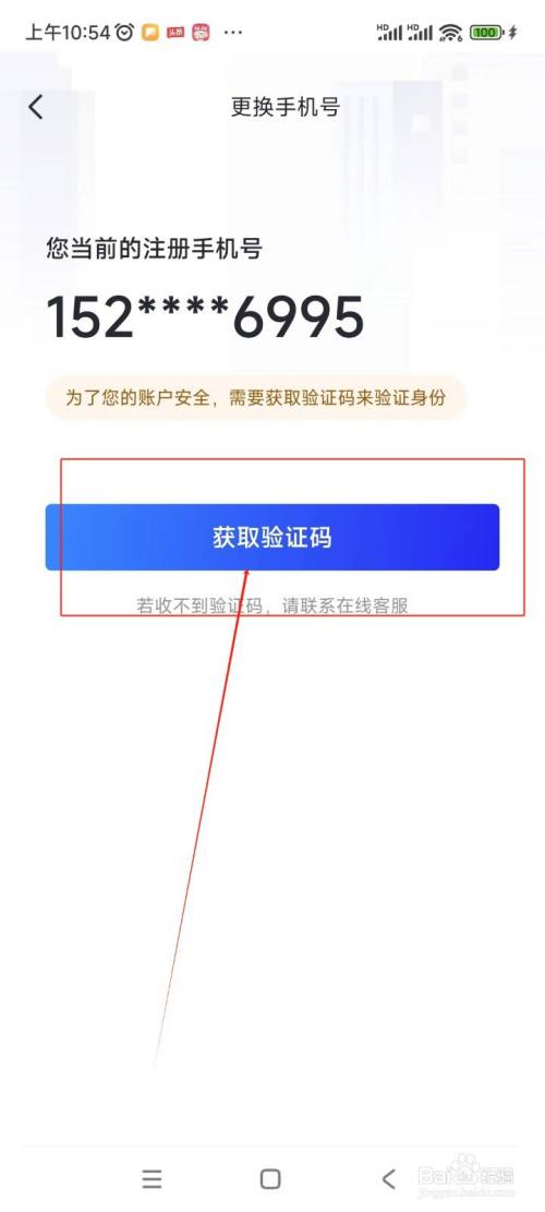 在弹出的新界面中输入手机验证码后,在新的界面中输入新的手机号后,点击“获取验证码”