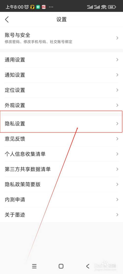 打开墨迹气候APP,在主界面点击右下角的“我的”,在我的界面中找到并点击“设置”