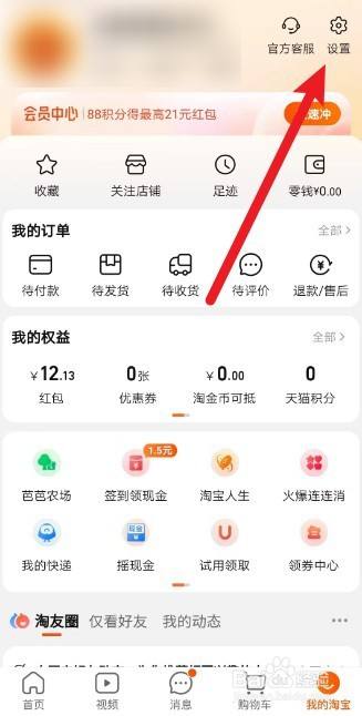 进入我的淘宝页面,点击右上角【设置】
