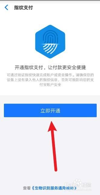进入指纹支付页面,点击【当即开通】