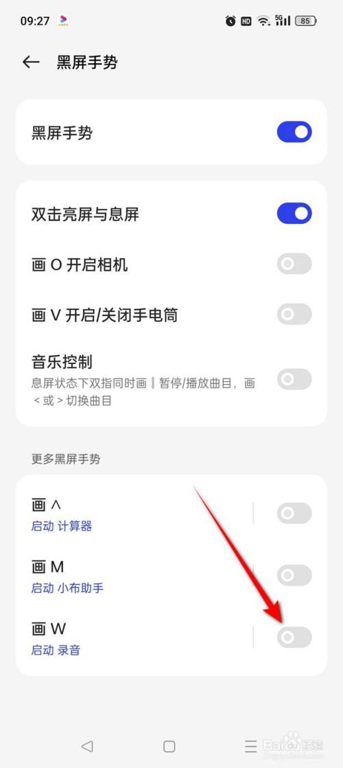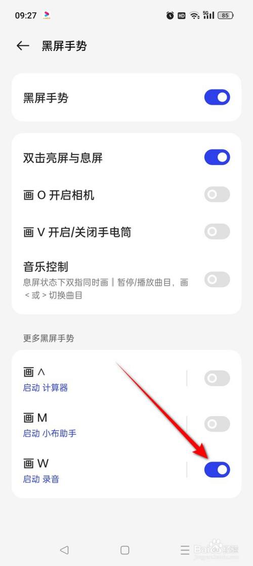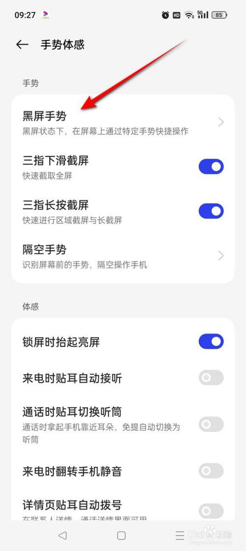 点击“黑屏手势”。