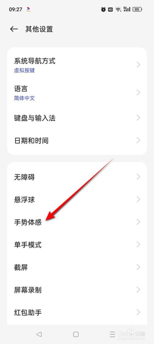 点击“手势体感”。