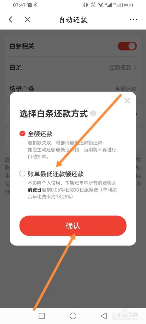 最后选择账单最低还条目额还条目,点击确认即可。