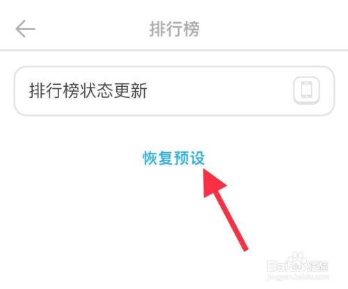 进入排行榜设置页面,点击“恢复预设”