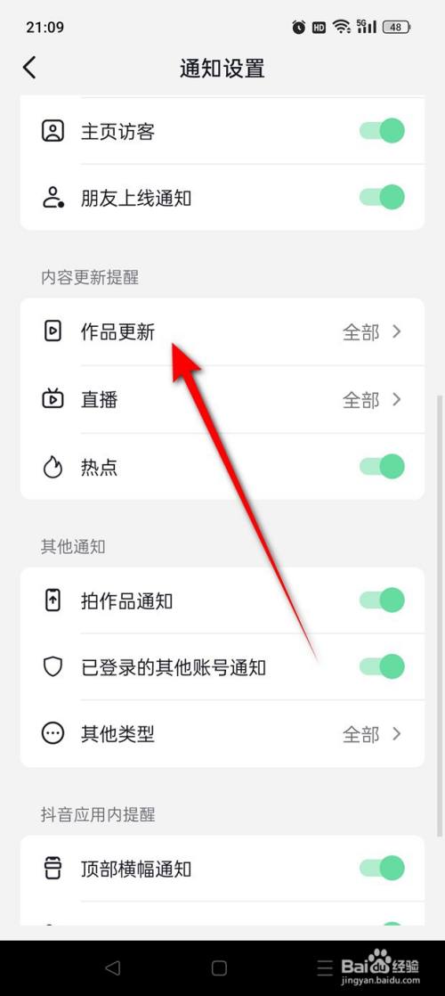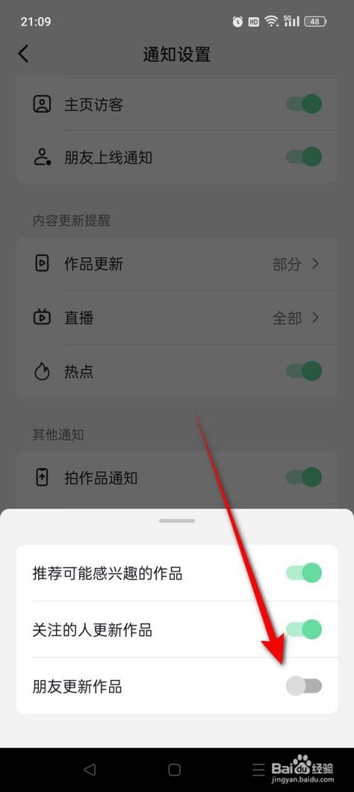 将“伴侣更新作品”旁的小滑块点亮即可开启。