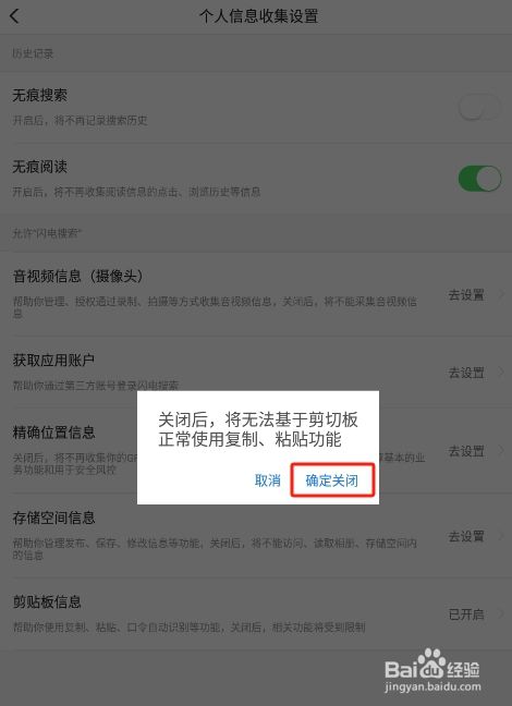 弹出如下图界面,提醒是否封闭读取手机剪贴板内容,点击确定封闭按钮。
