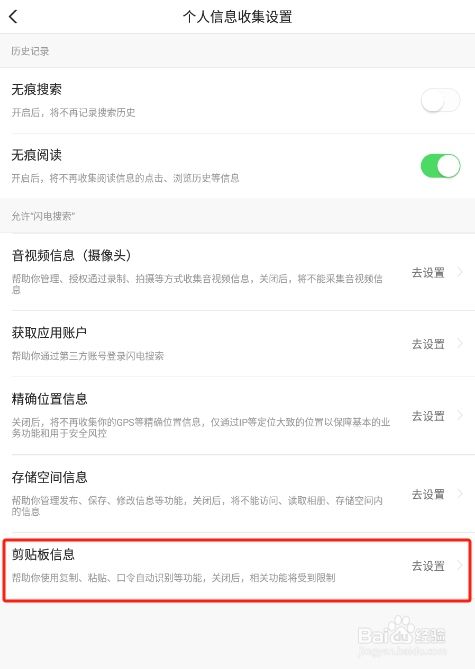 到此,克制闪电搜刮APP读取手机剪贴板已经设置完当作了。
