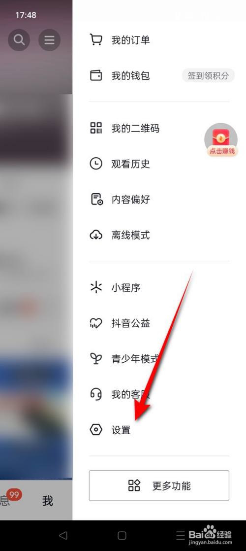 打开抖音“我”的页面,点击右上角的三横图标进入。