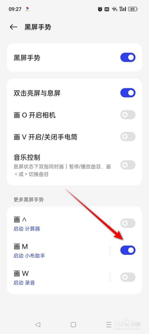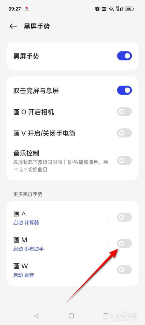 将“画M”旁的小滑块点暗即可封闭,此时点击小滑块。