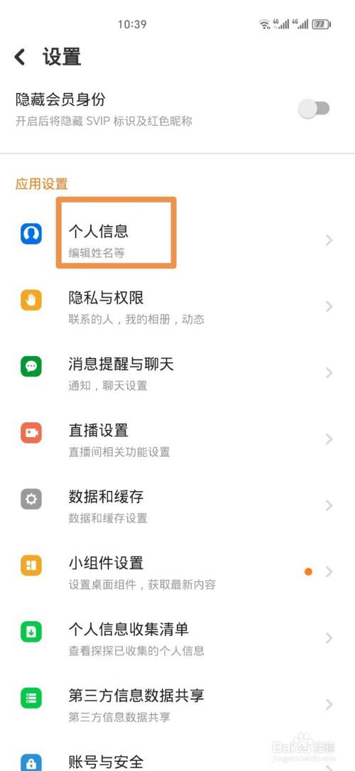 然后点击个人信息,