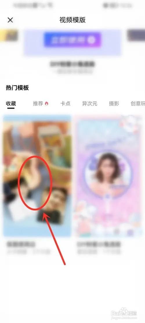 进入到视频模板界面,点击“保藏”选项。侧彩