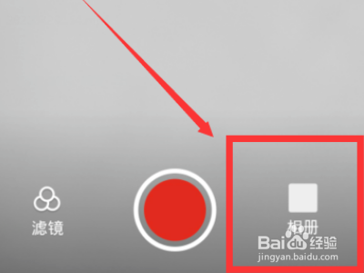 在发视频界面,点击右下角的【相册】按钮选择录制的视频。