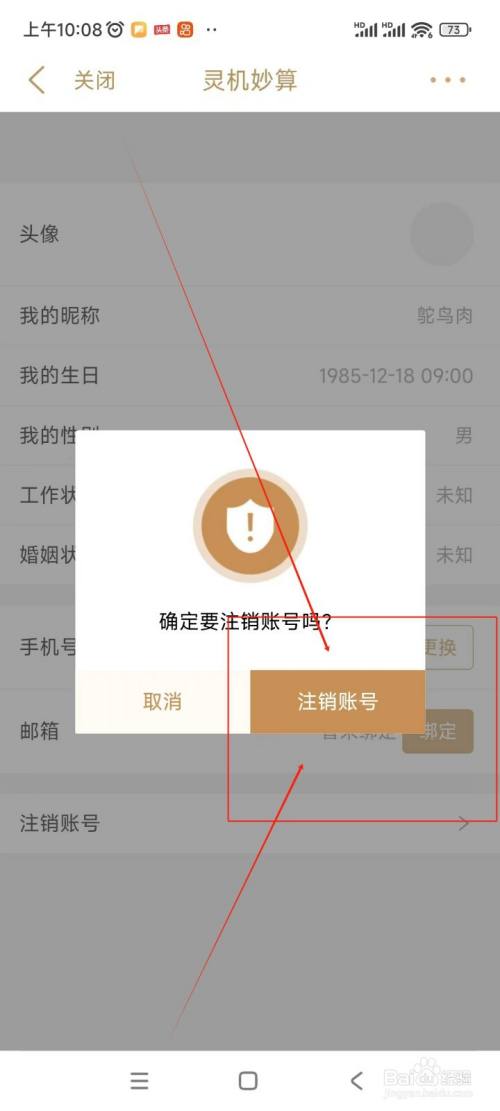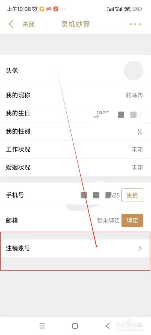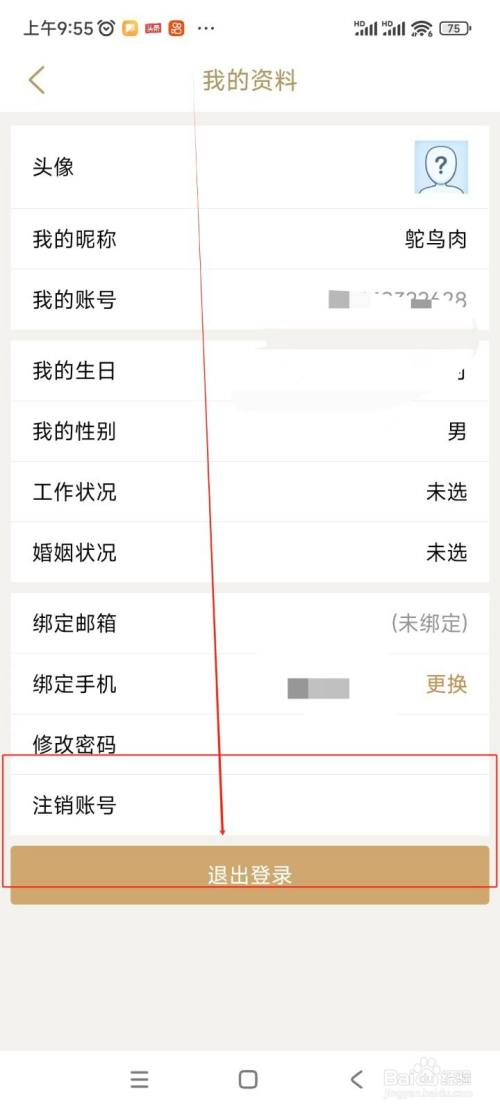 在头像界面中点击“刊出账号”