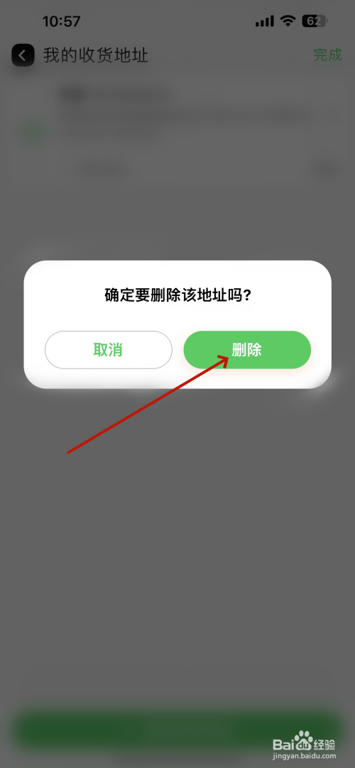 打开确定要删除该地址吗的对话框点击“删除”按钮。