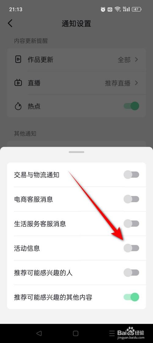 将“运动信息”旁的小滑块点暗即可封闭。