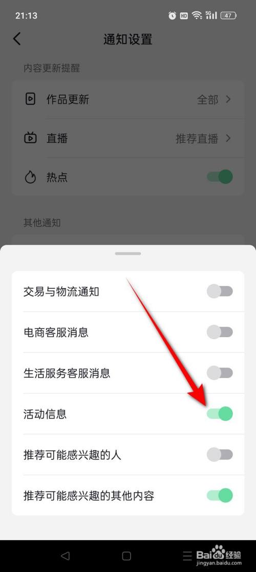 将“运动信息”旁的小滑块点亮即可开启。