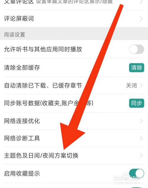 在设置页面,找到并点击下方【主题色及日间/夜间方案切换】,进入主题页面