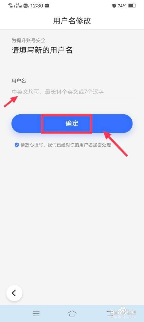 验证后,进入修改页面,输入新的用户名,再点击【确定】。