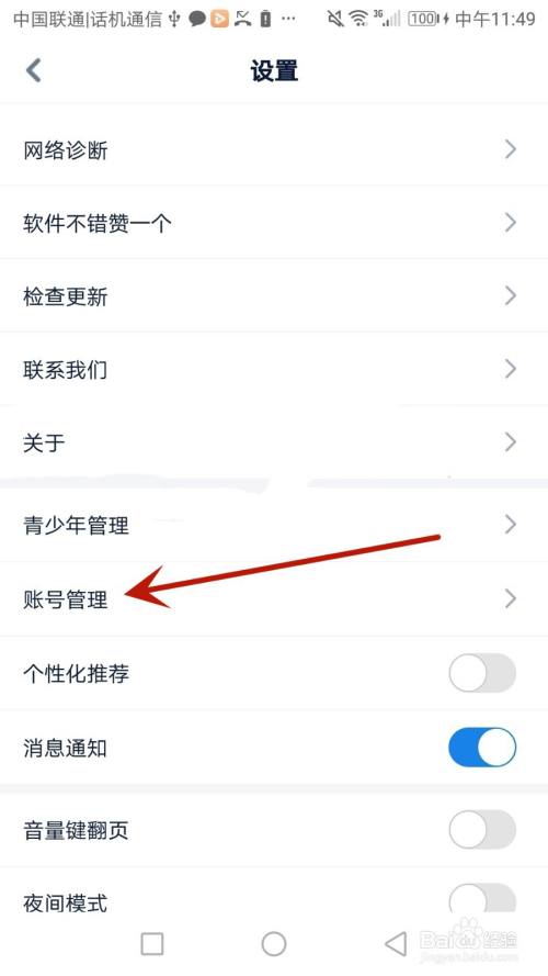 点击箭头指标的目的的“账号办理”选项