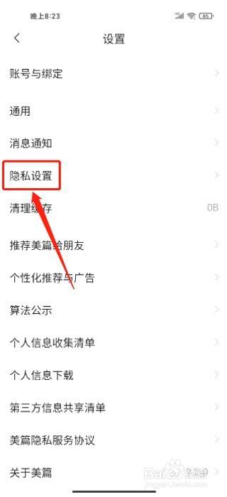 找到隐私设置。