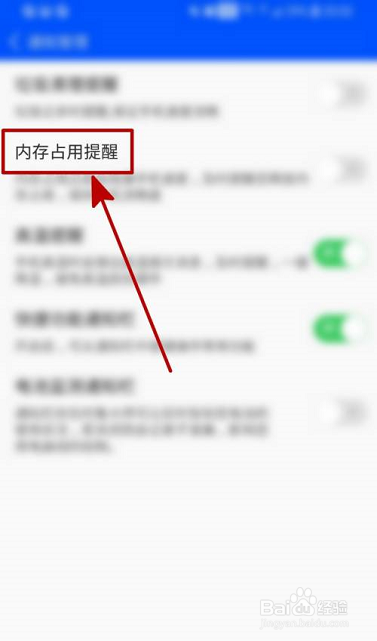 终极,当内存占用提示后面的开关打开时,设置就乐成了。